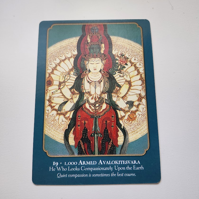 The Buddha oracle card that wanted to share wisdom, that I drew for today, to address the subject of Women Collectiveness Trauma Bond is 1,000 Armed Bodhisattva Avalokitesvara (see picture below). Please keep note that this deity has both male and female aspects. Bodhisattvas are not solely male or female but at that stage of enlightenment they have become both gender. Gender probably doesn’t matter when you get that far up into ascension ;). I had sent this picture to my brother whom I addresses as She/Her sometimes because he is gay and is comfortable with me addressing him that way. I shared this with my brother because as a child I can remember both of us being in awe when we see her in our Buddhist temple we attended to growing up. This brother has a soul of a woman, as they accepted it, so I consider them going with this same tide of this Women Collective Trauma Bond all the female spirit. As the Bodhisattva no longer has a gender tied, I see my brother as a female because his personality and likes lends more on the feminine side of humans and not judging him by his outer appearance. So speak to this Bodhisattva about being compassionate to the world and, in the mirror (a practice I will share in another blog) at yourself. She is like all mother ready to multitask with her many arms. She will create a master piece out of us, what we thought were broken pieces of our heart, failures and set-backs. Let her guide you in your dreams to a wholesome and healed path.